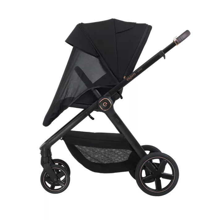 UV szűrős kupolája, beépített szúnyoghálója és esővédője tökéletes védelmet nyújt minden évszakban. Majdnem vízszintesig állítható ülőrésze tökéletes fekvőhelyet biztosít alvás esetén.