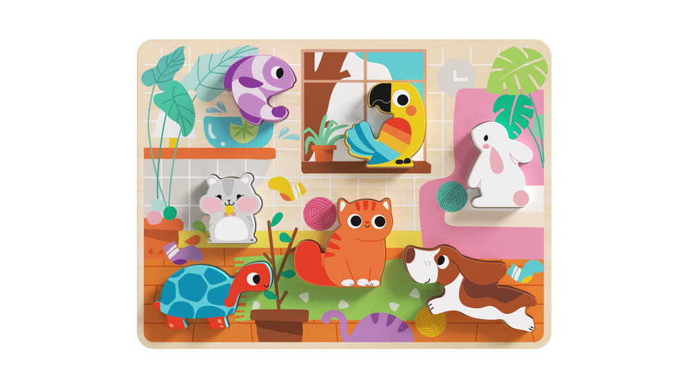 Színes kis cuki háziállatos puzzle kiváló minőségű fából.